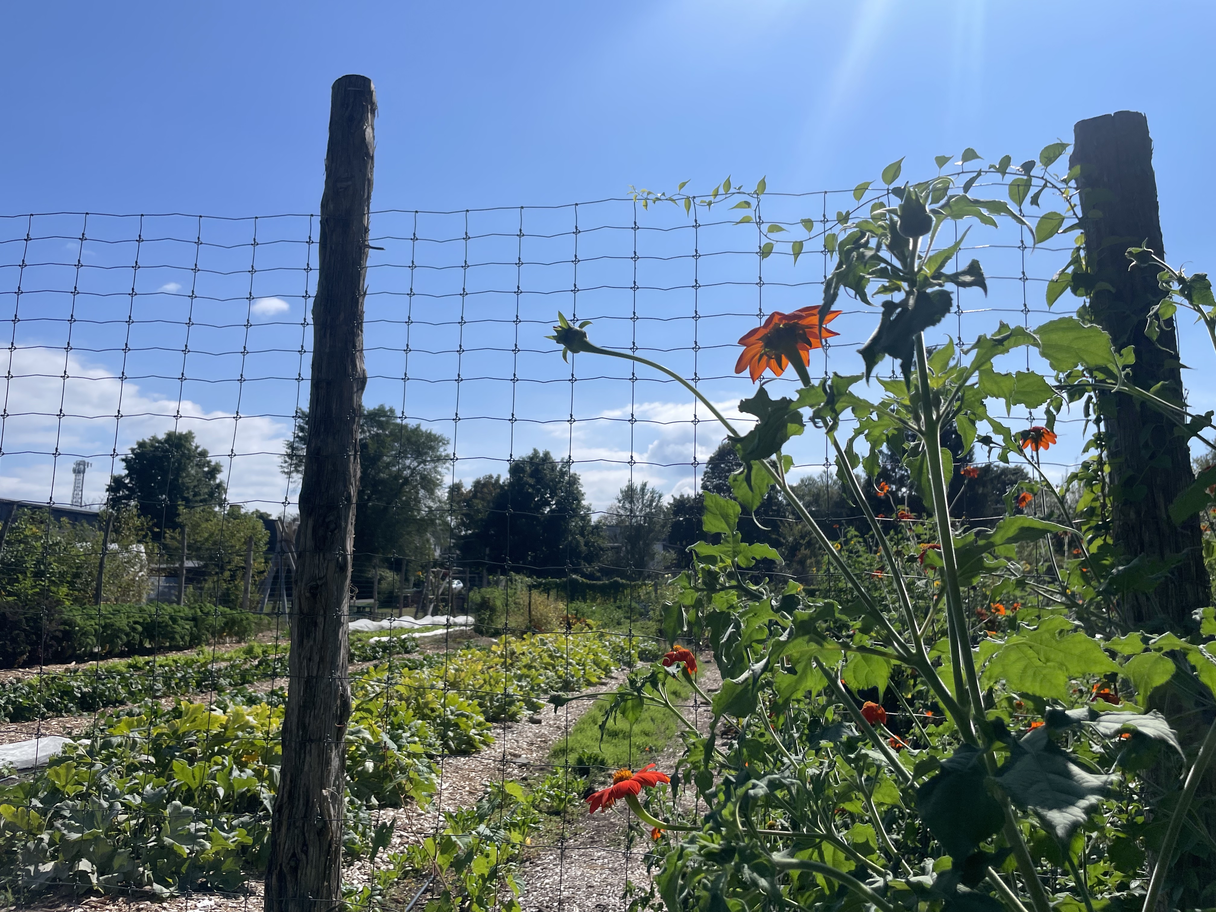 Lately, I’ve been taking a back way to the gym, crossing the railroad tracks to walk through the YMCA garden. Rows of kale stretch up to the sun, tomatoes take their last gasps of glory. Sunflowers start to droop, like slender necks bending under heavy heads. Bright splashes of amaranth make an appearance in the corners.