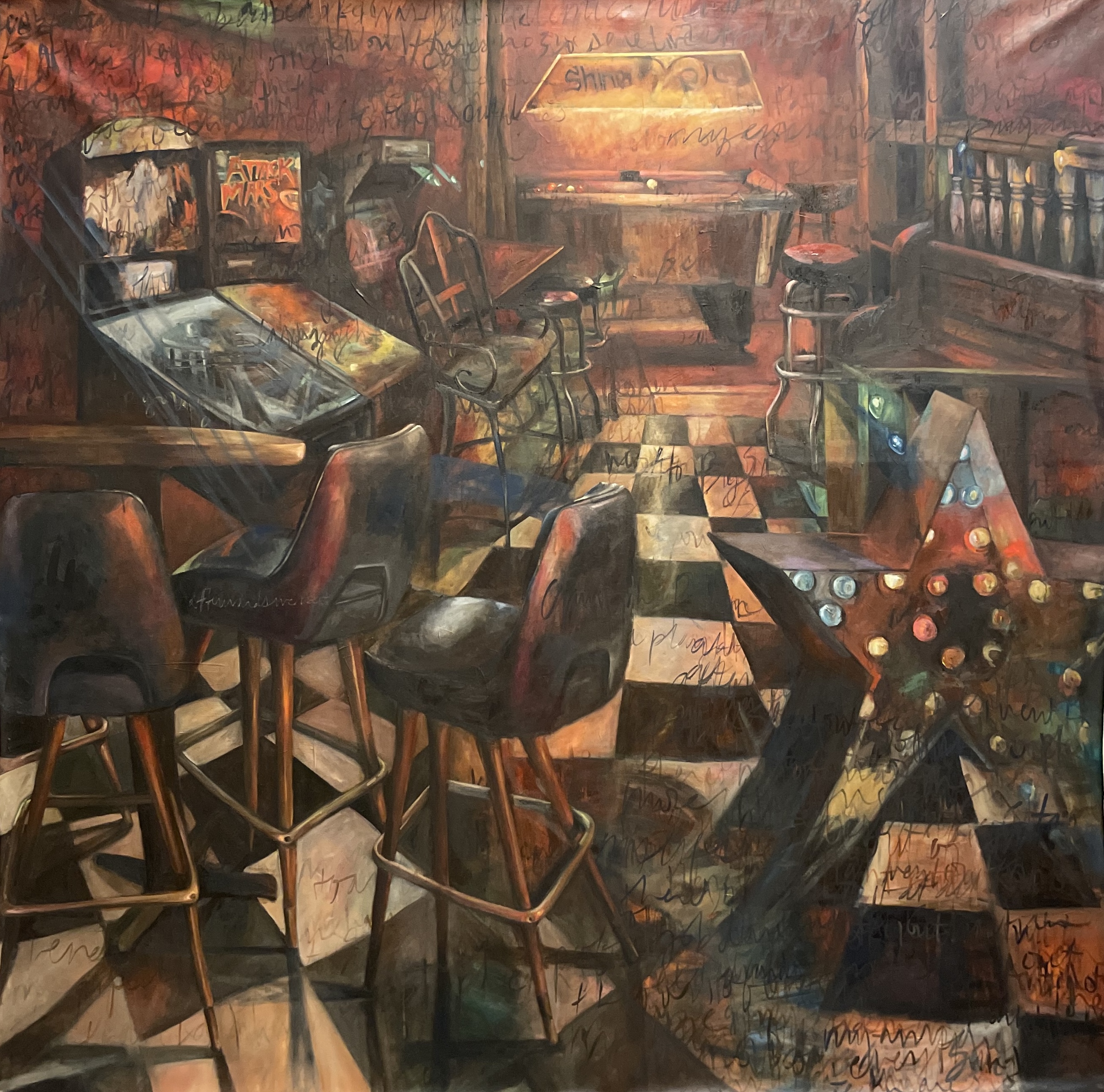 That sentiment is a perfect descriptor for my “dislocation” series, which really is about nostalgia. I am currently working on a painting entitled, “Afterwards we went to Big Star Bar/In the End is the Beginning.”