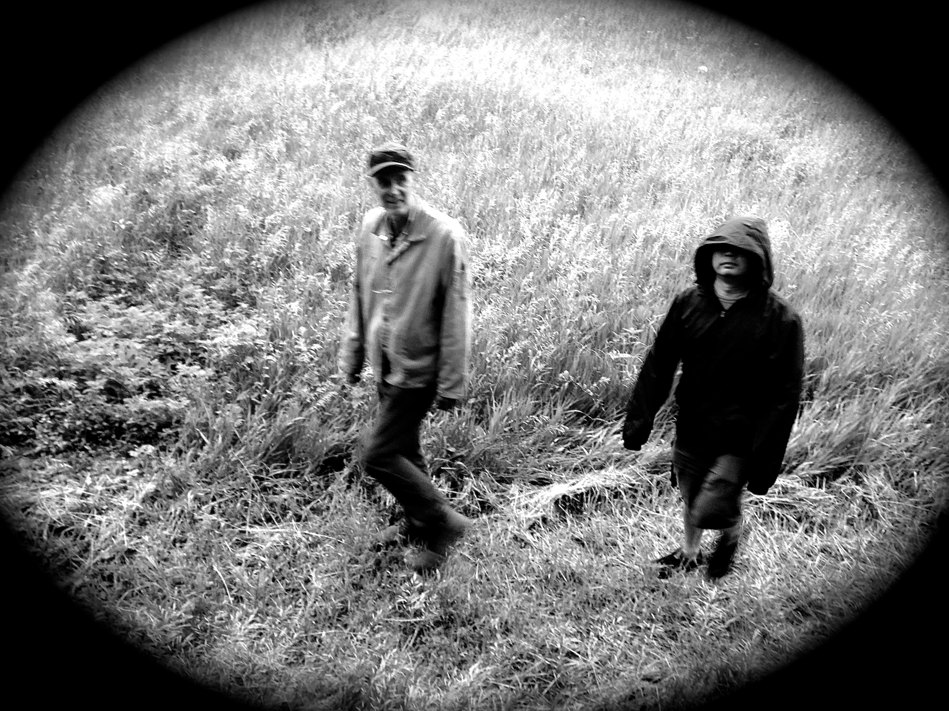 Yoshi out walking on the Art Farm with Ed